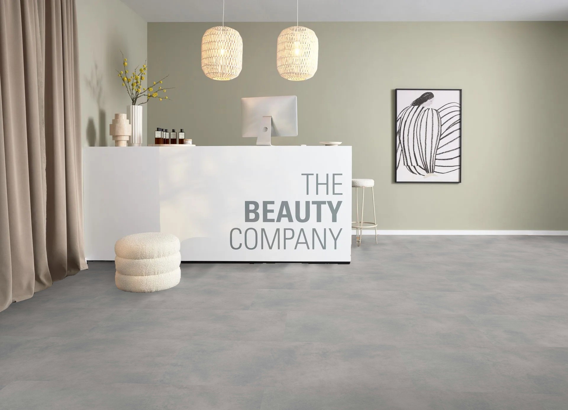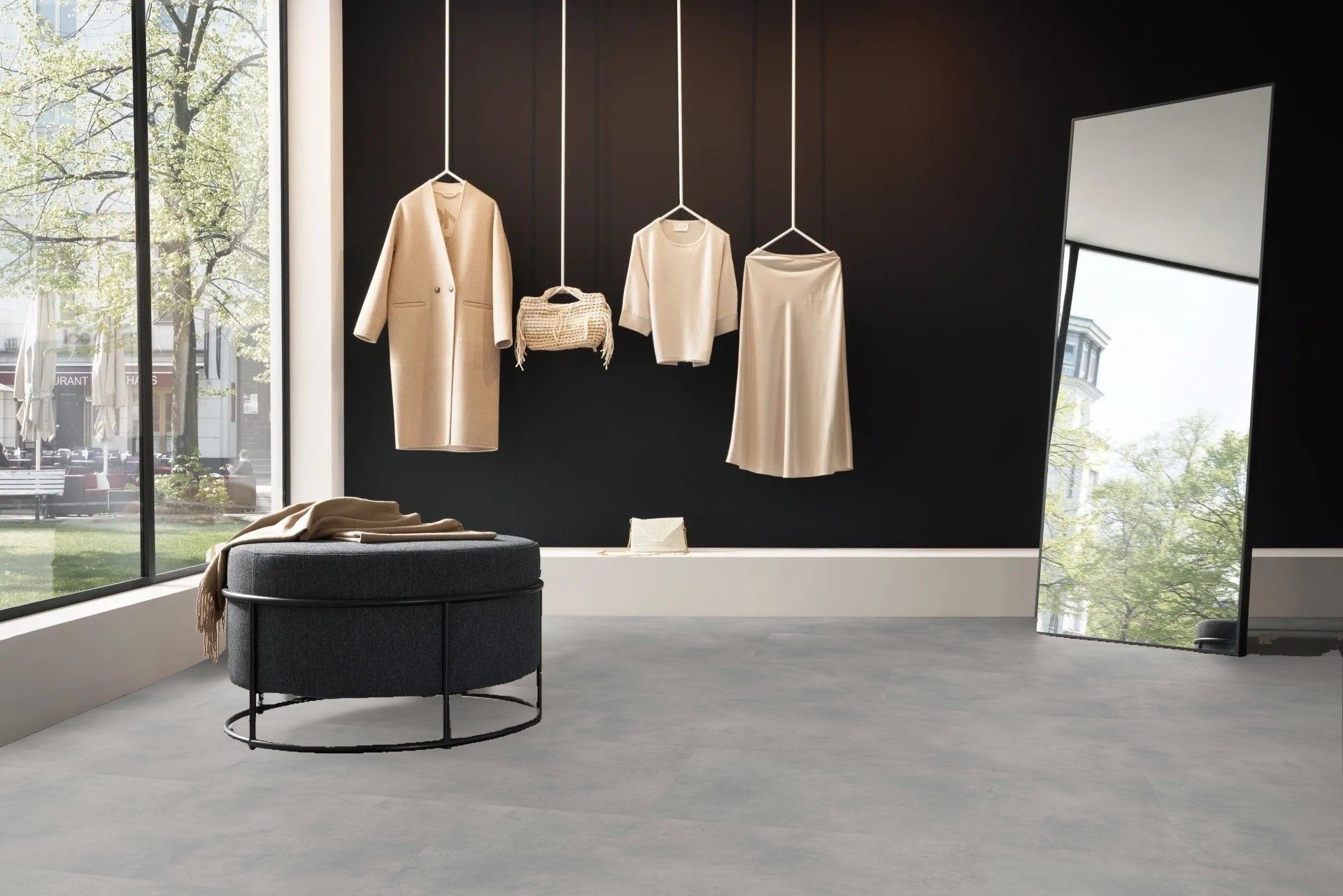 Işık yüzeye vurdukça, beton dokusunun doğal geçişleri ve hafif parlaklığı belirginleşiyor — tam anlamıyla modern şehir tarzı bir atmosfer yaratıyor. Kısacası, Brooklyn’in endüstriyel mirasının o havalı görünümü ile modern zemin teknolojisinin konforu tek mekânda buluşuyor.- wineo 1500 stone XL serisi