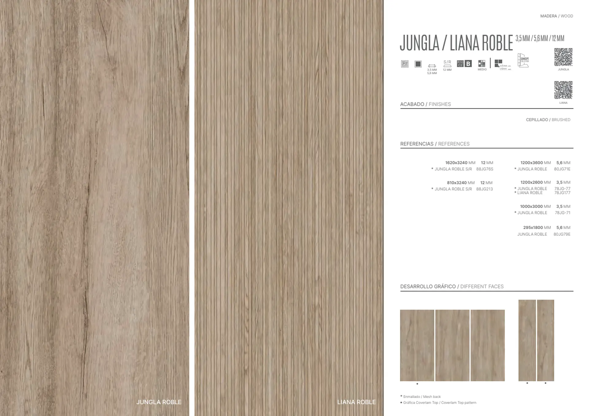 - Yüzey: Fırçalanmış (Cepillado), Natural mat
