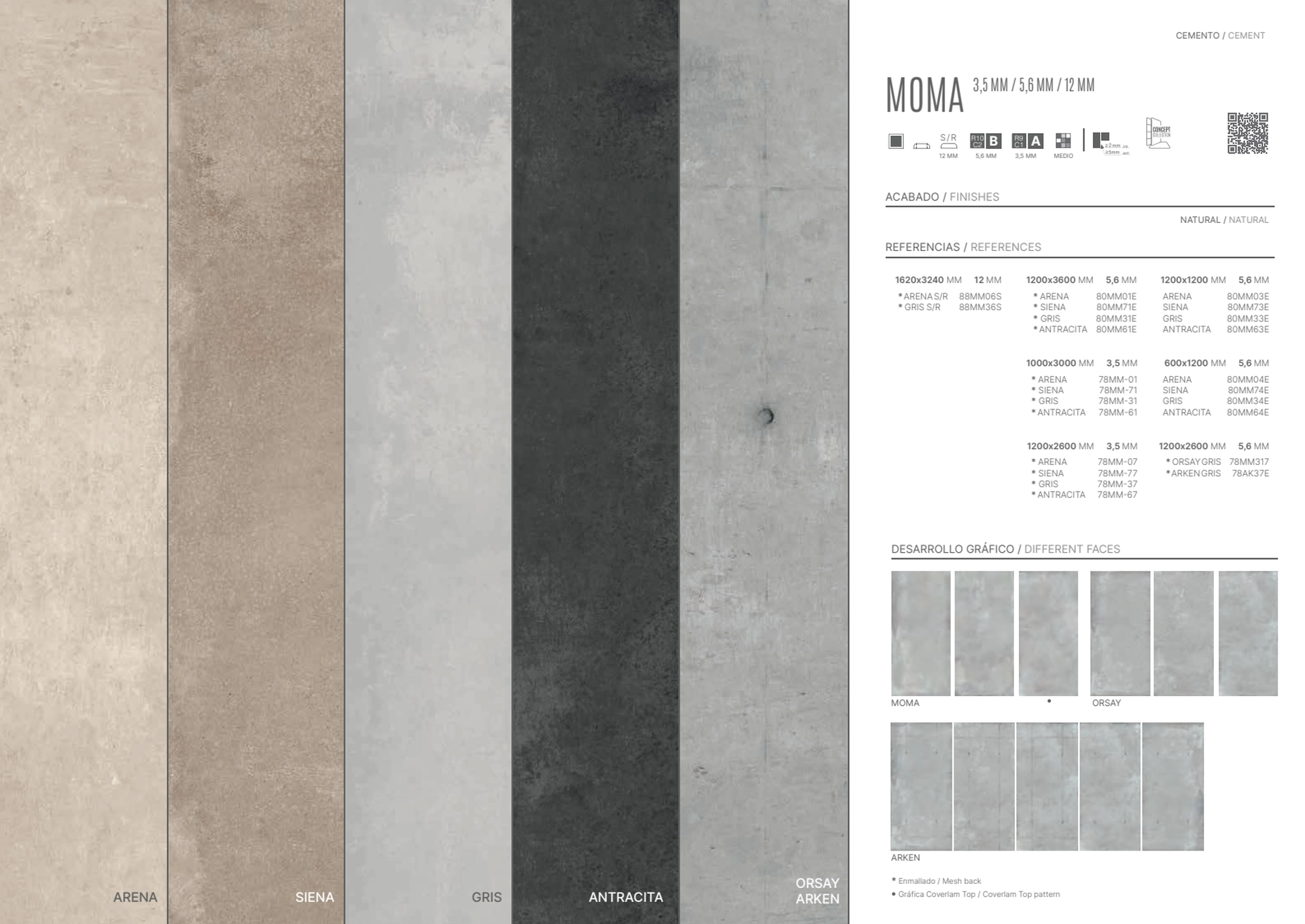- Yüzey: Doğal mat (Natural)